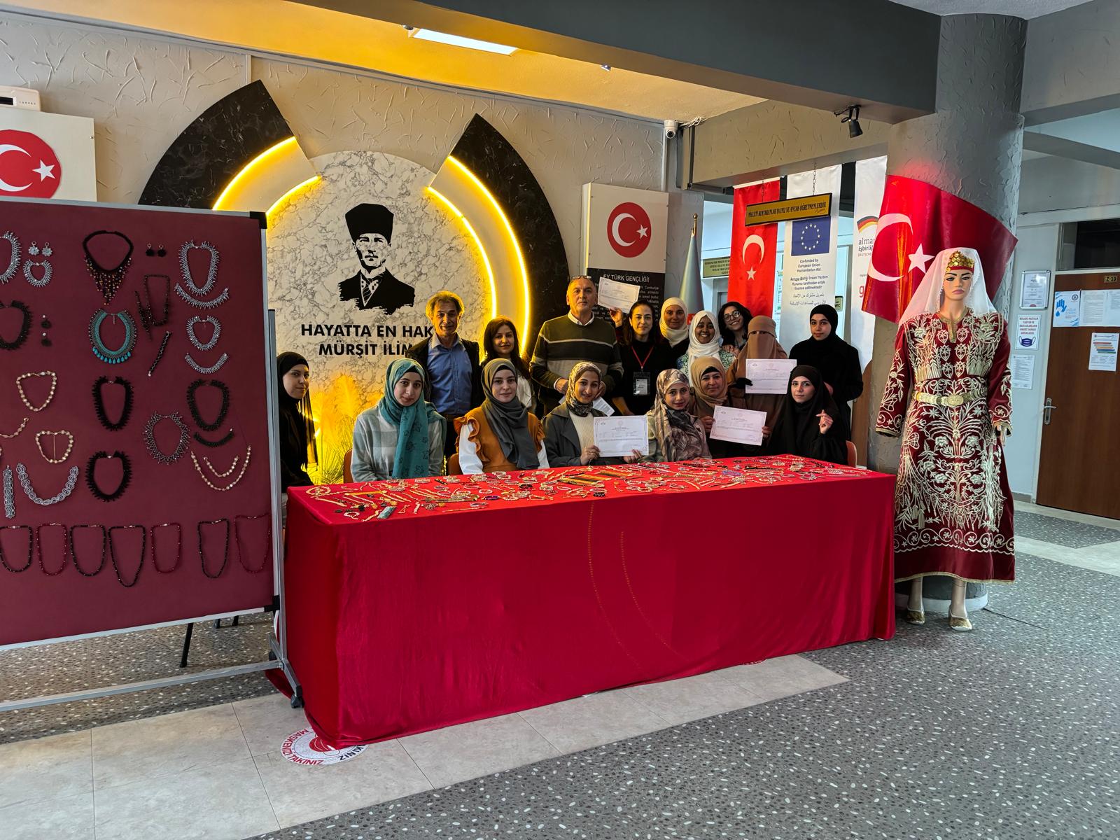 Uzun soluklu eğitim sürecinde teknik bilgi ve el becerilerini geliştiren kursiyerlerimiz, üretim yoluyla kendi potansiyellerini keşfetme fırsatı buldu. Eğitim sonunda düzenlenen sergide, katılımcıların el emeğiyle hazırladığı birbirinden özgün ve yaratıcı takılar ziyaretçilerin beğenisine sunuldu.